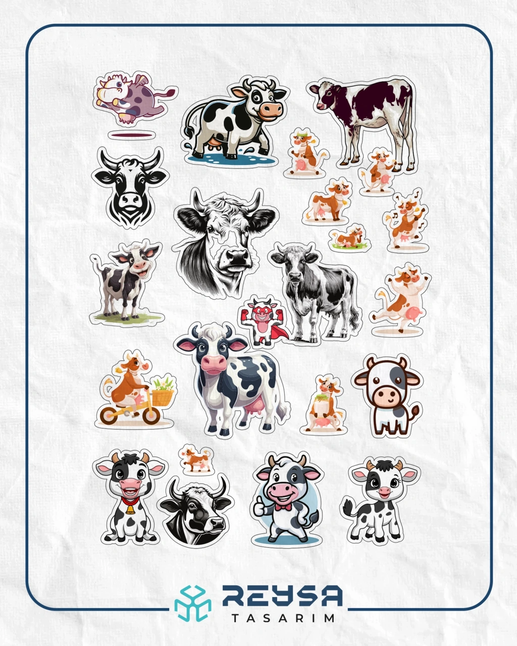 Sevimli İnek Sticker Set 2