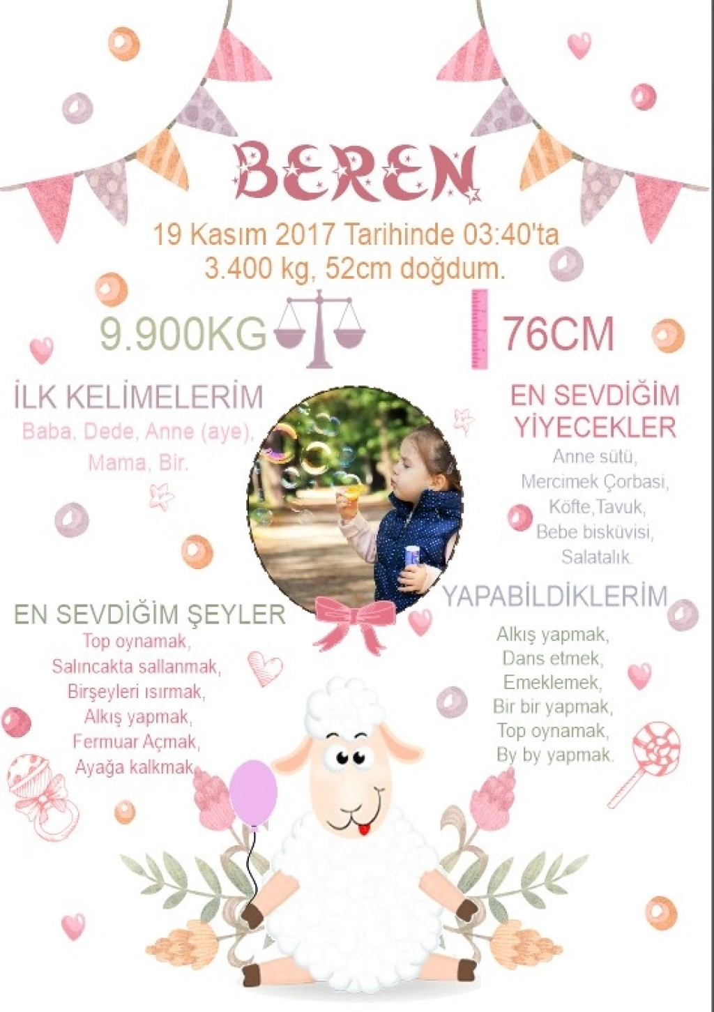 Sipariş sonrası bebeğe ait bilgileri (İsim – Doğum Tarihi – Saat – Boy – Kilo) iletmeniz yeterlidir.