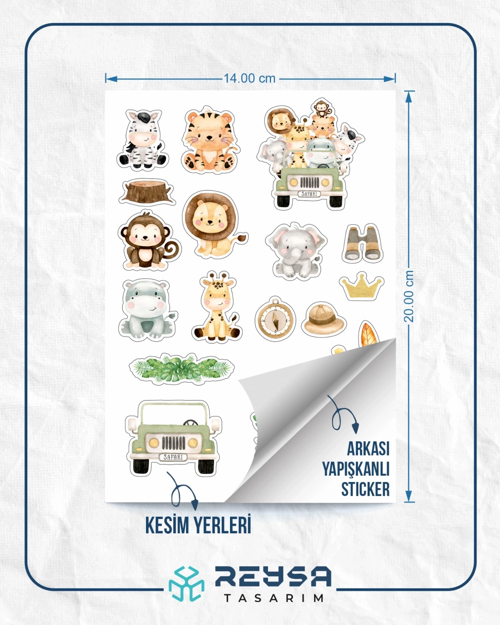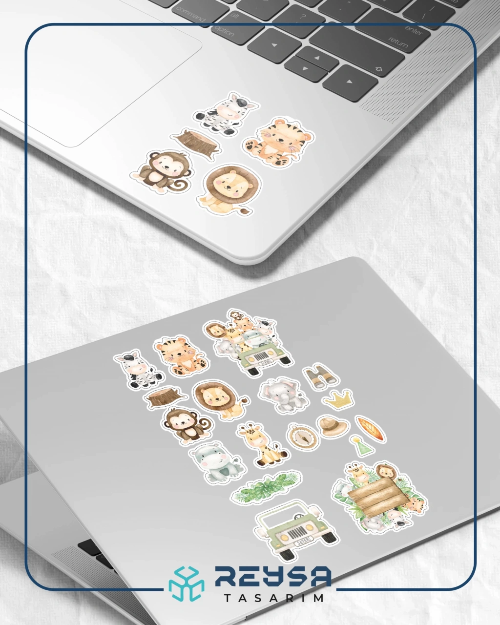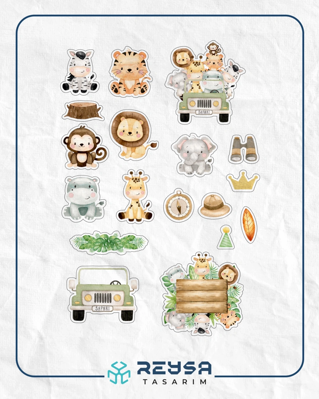 Sevimli Safari Hayvanları Sticker Set 1 16 Parça Telefon, Tablet, Defter, Laptop Sticker