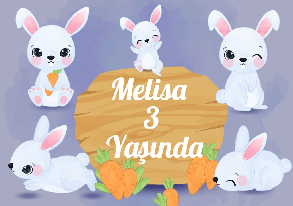 Sevimli Tavşan Temalı Doğıum Günü Afişi - 100x150 Cm