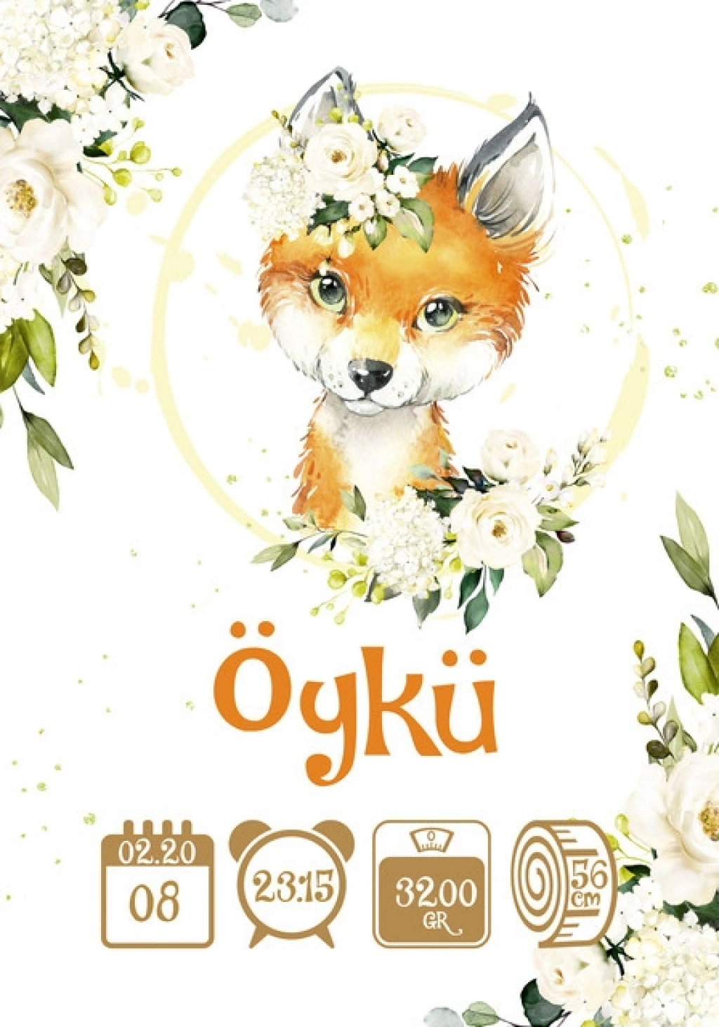 Sipariş sonrası bebeğe ait bilgileri (İsim – Doğum Tarihi – Saat – Boy – Kilo) iletmeniz yeterlidir.