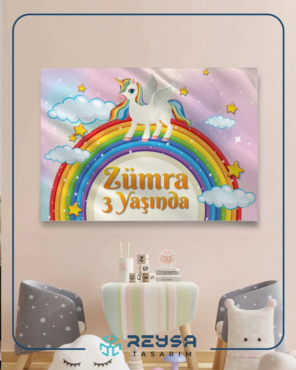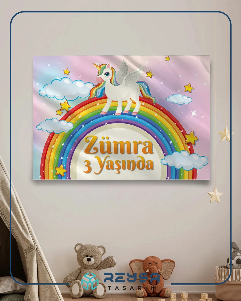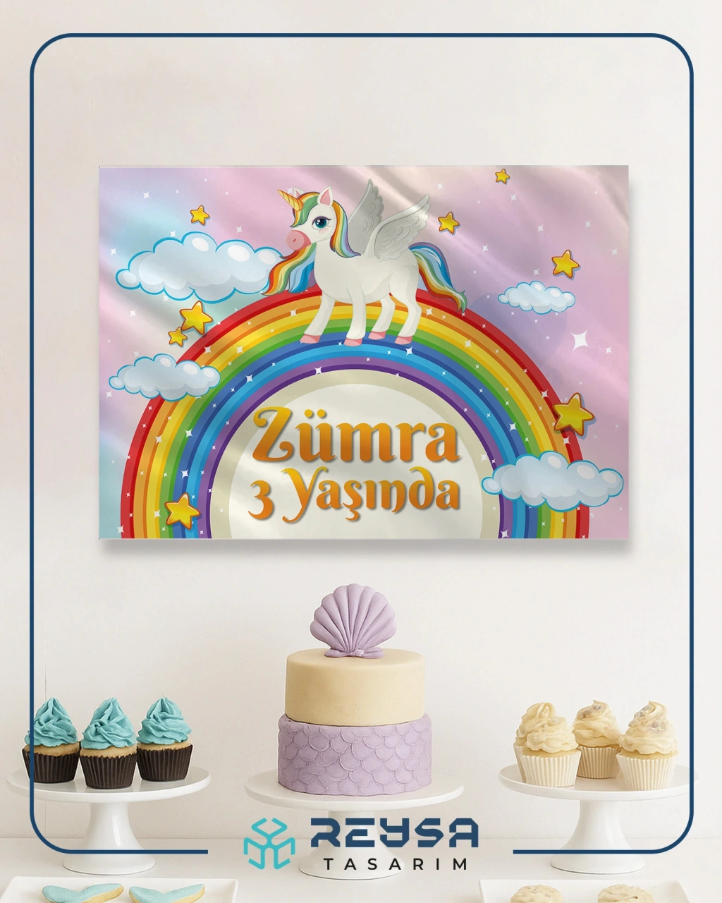 Unicorn ve Gökkuşağı Temalı Doğum Günü Afişi 35X50 cm