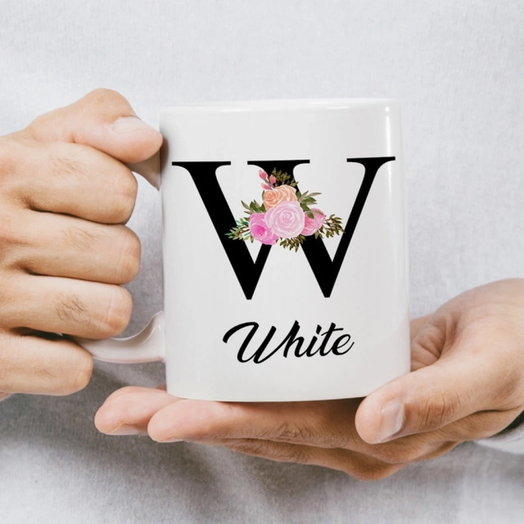 W Harfi Çiçekli İsme Özel Kupa