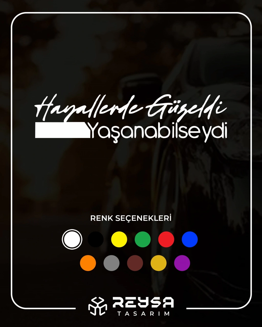 Hayallerde Güzeldi Yaşanabilseydi Araba Sticker 17x17 Cm Beyaz