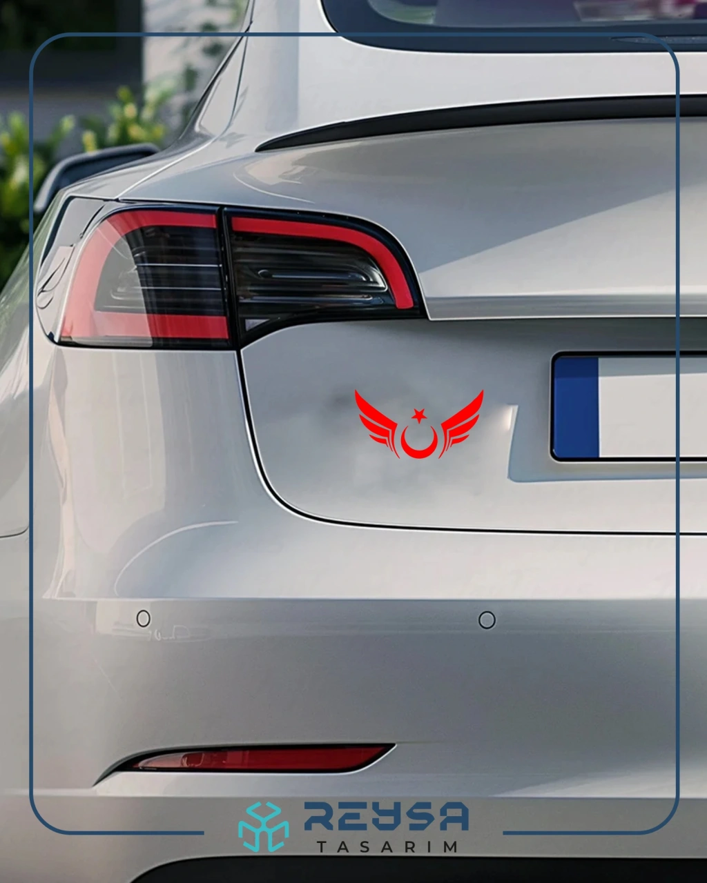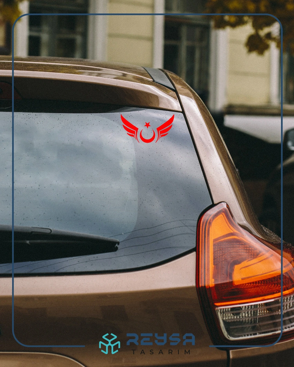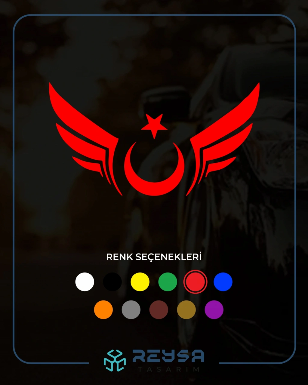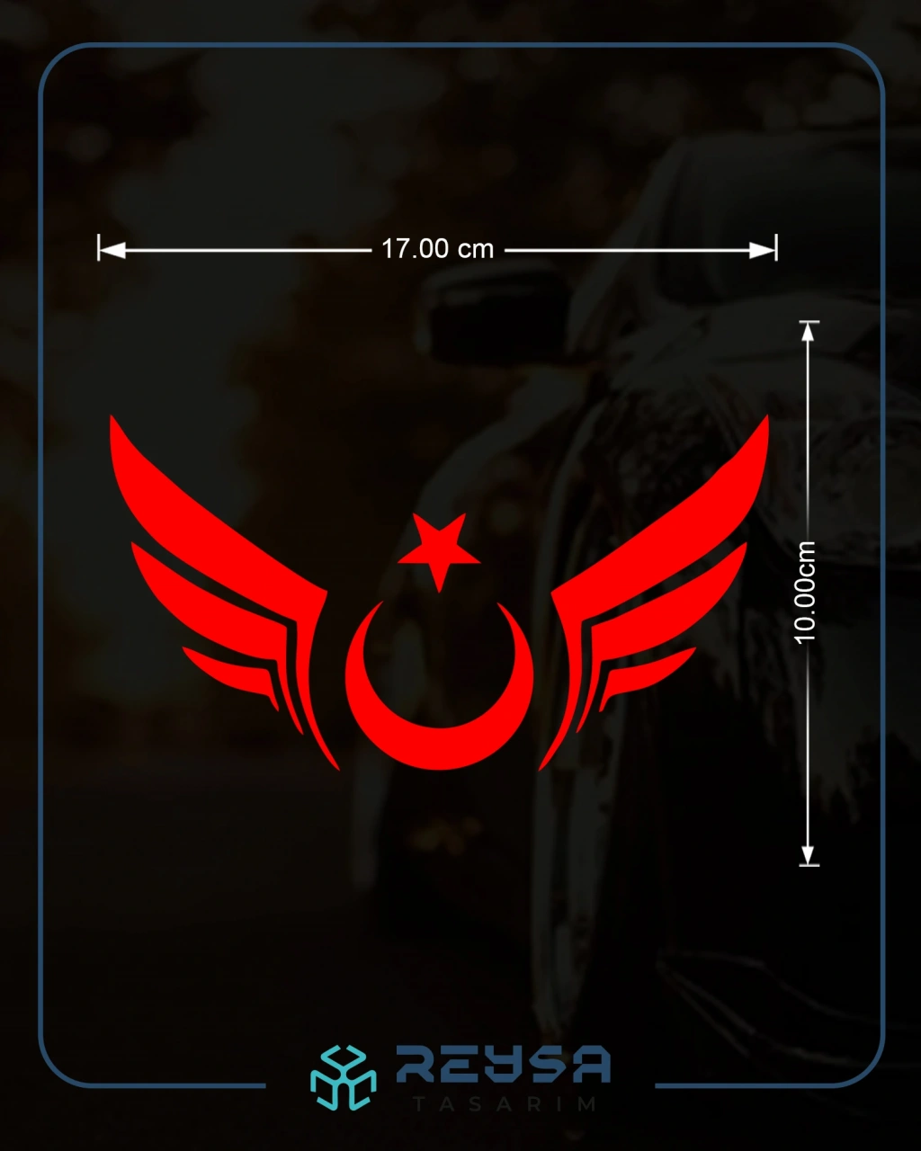 Kanatlı Türk Bayrağı Araba Sticker 17x17 Cm Kırmızı