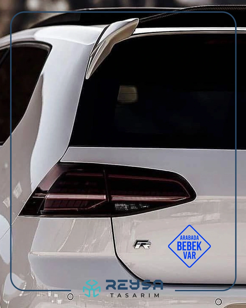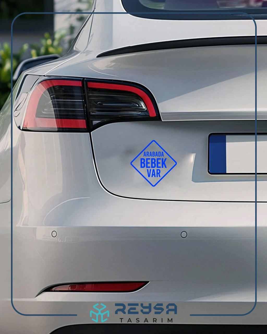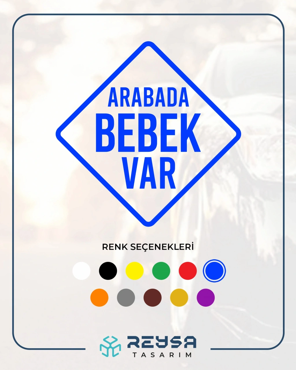 arabada Bebek Var Sticker 17x17 Cm Mavi