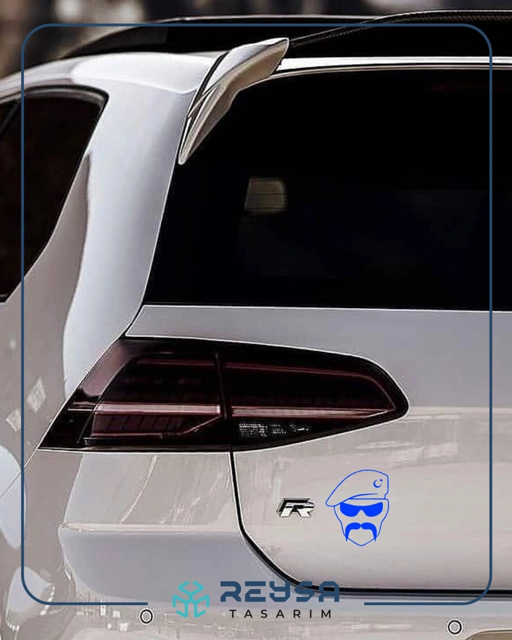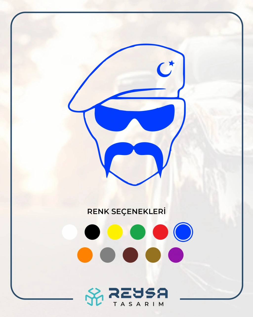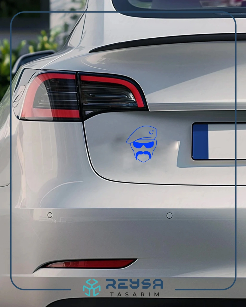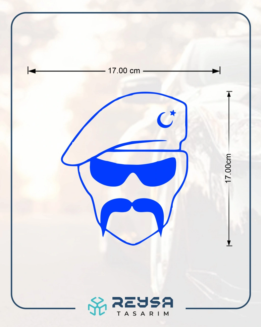 Hilal Bıyıklı Asker Araba Sticker 17x17 Cm Mavi