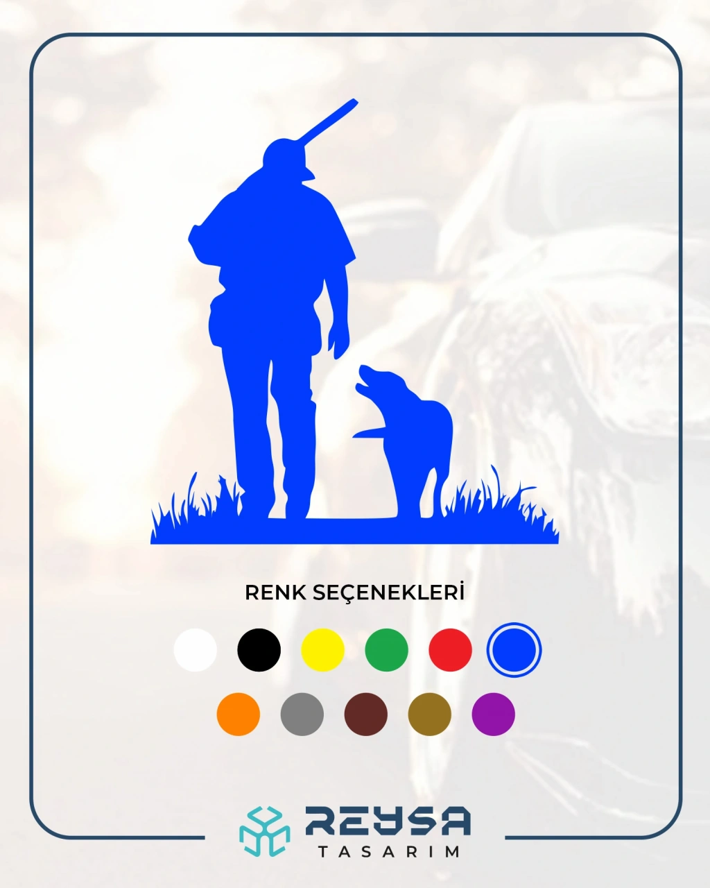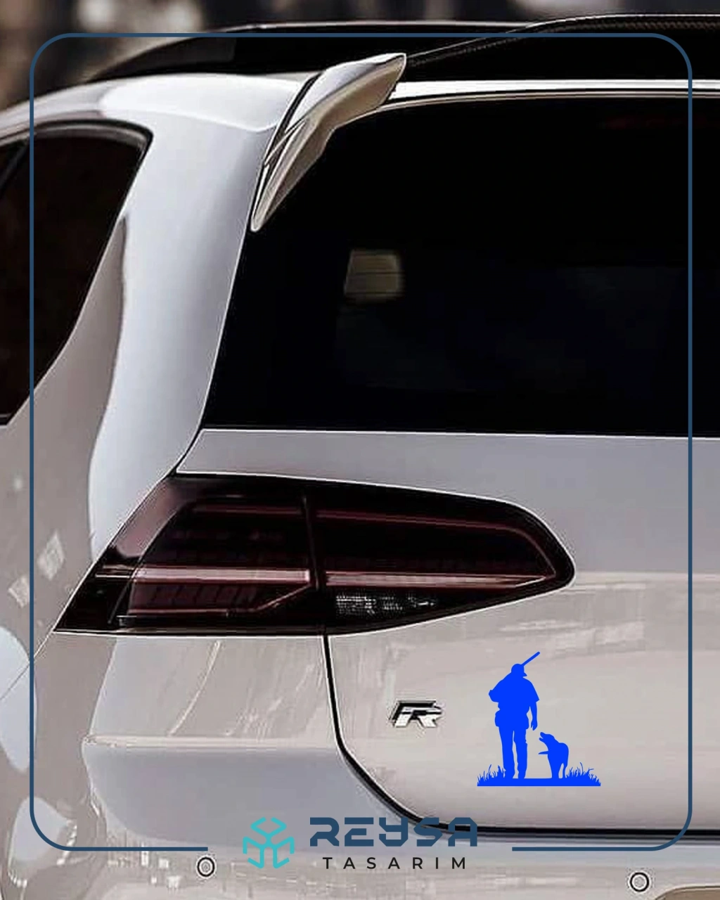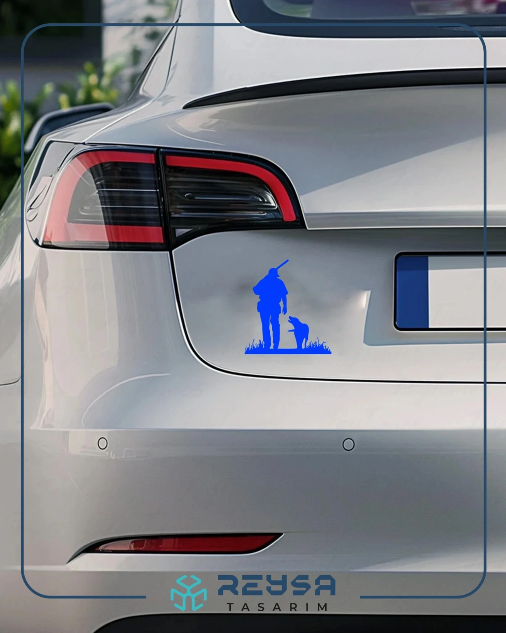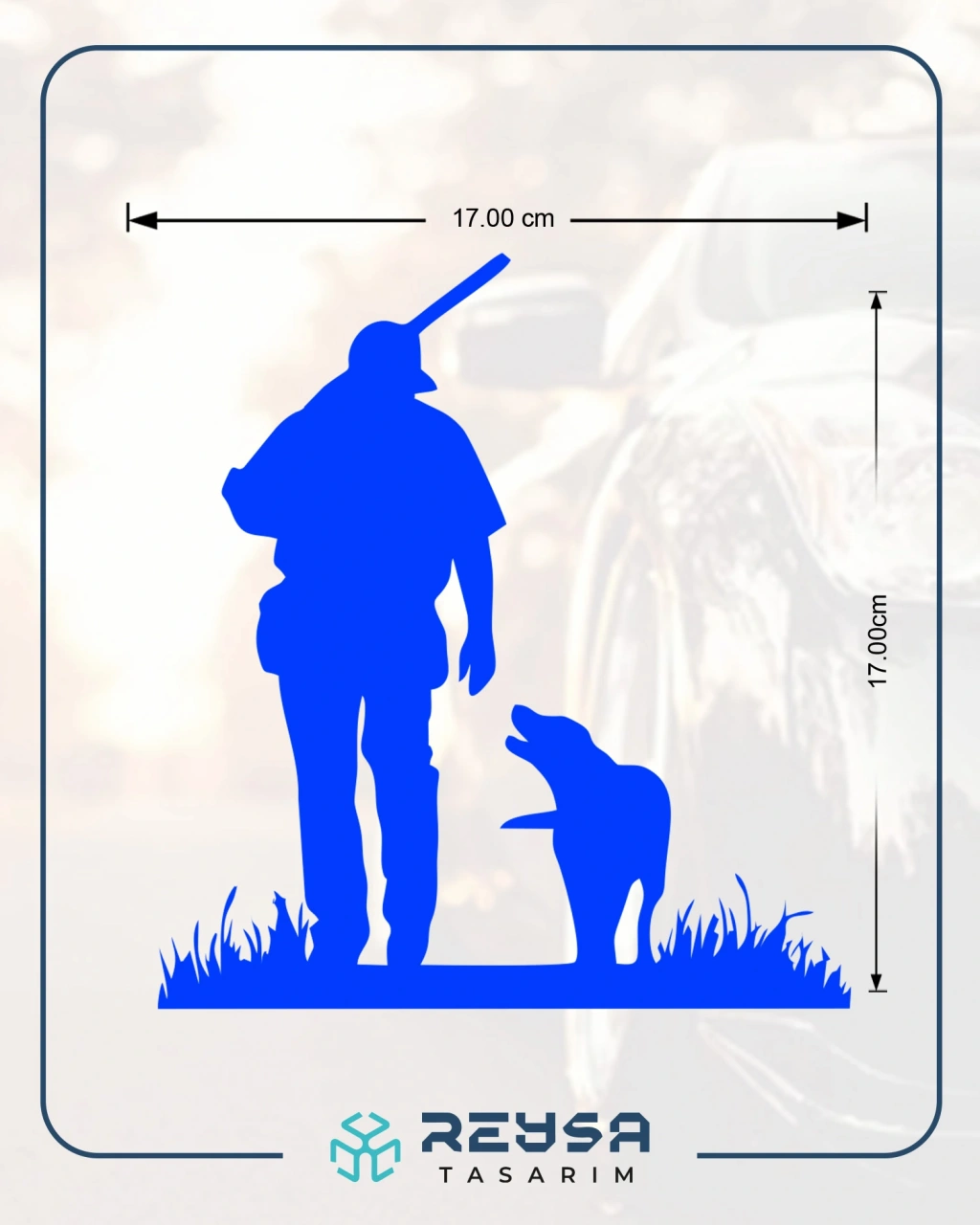 Avcı ve Av Köpeği Araba Sticker 17x17 Cm Mavi