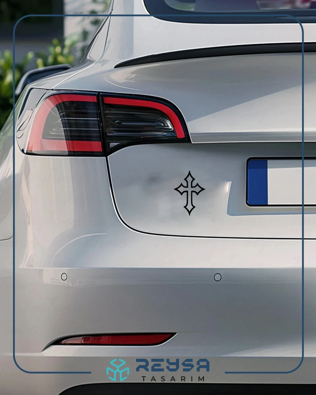 Haç İşareti Araba Sticker 17x17 Cm Siyah