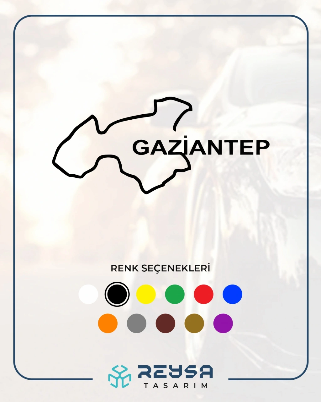 Gaziantep Harita Araba Sticker 17x17 Cm Siyah