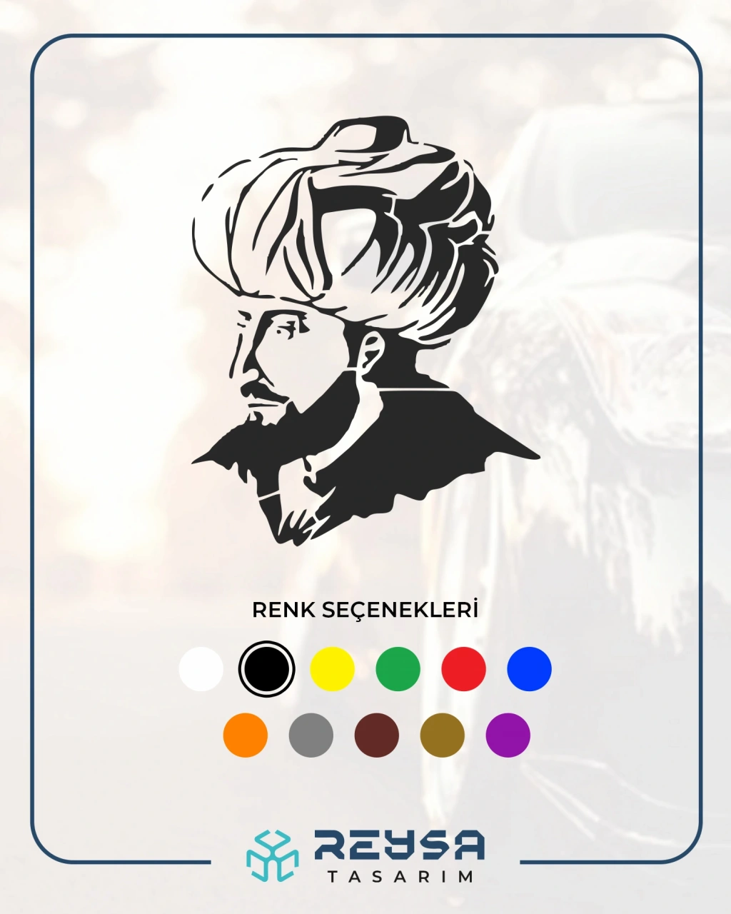 Fatih Sultan Mehmet Araba Sticker 17x17 Cm Siyah