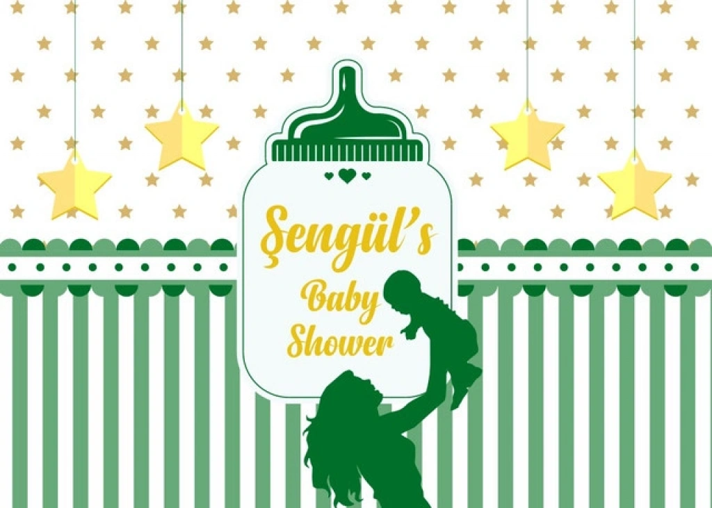 Yeşil ve Bebek Temalı Baby Shower Afişi 100x150 Cm